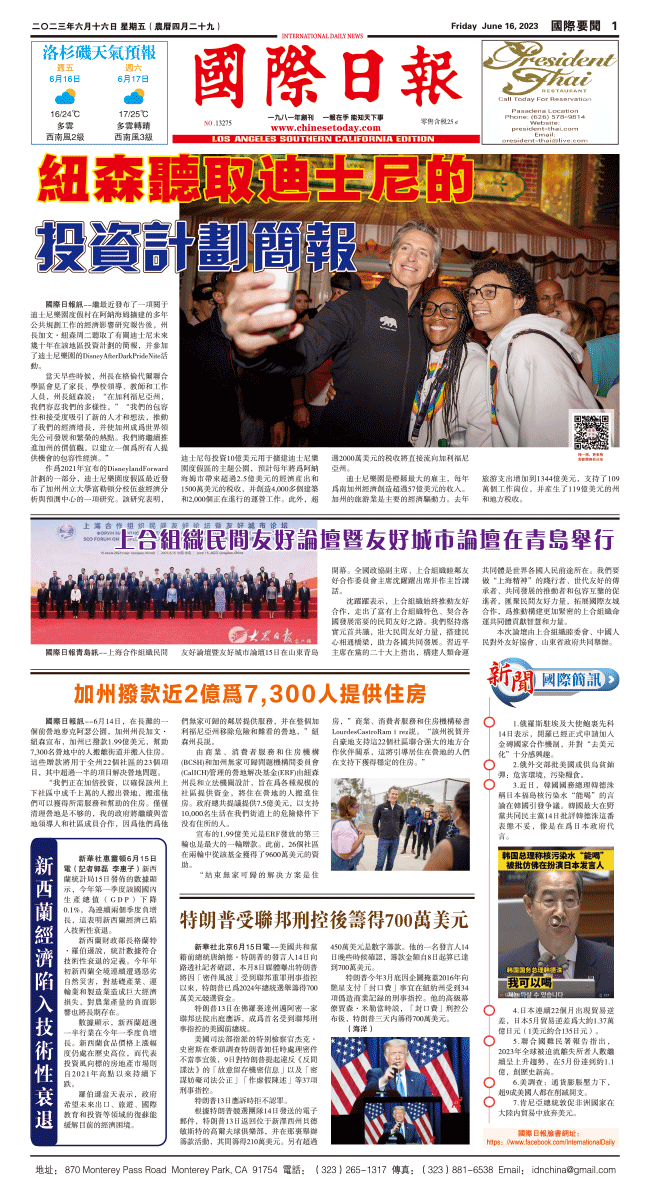 16日國際日報1-國際要聞 发布日期:2023/6/21 来源:國際日報 打印