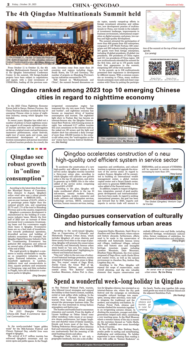 10/20-International Daily News CHINA.QINGDAO 2023/10/27 source: International daily Print