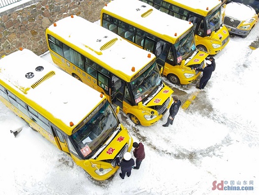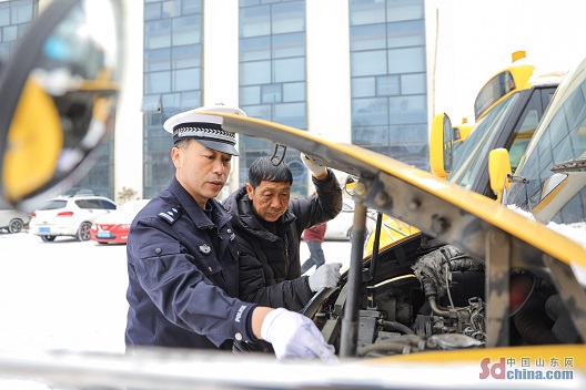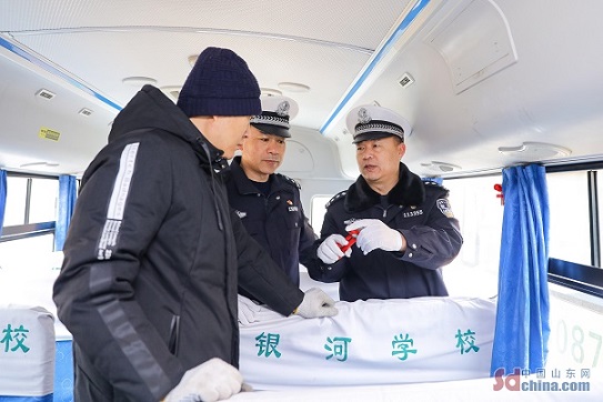 On February 22nd, with the start of spring semester approaching, police officers in Licang, Qingdao conducted a special safety inspection of school buses in their jurisdiction, to promptly eliminate safety hazards, and ensure the safety of students, welcoming the arrival of the new semester. (Photo by Zhang Ying)