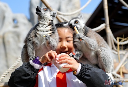 March 3rd is World Wildlife Day. Qingdao Forest Wildlife World invites students from Qilu NO.1 Experimental Primary School to visit the park, learn about the protection knowledge of wildlife, and have a close contact with animals. (Photo by Zhang Jingang)