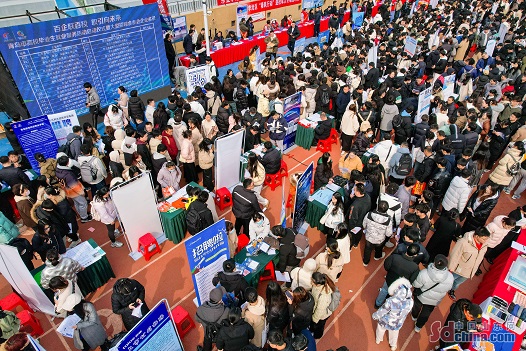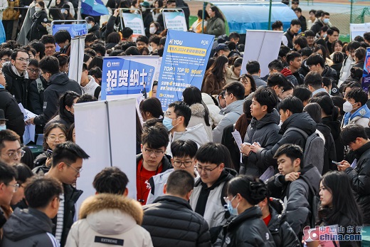 Job seekers attend a large-scale job fair for college graduates in Licang District, Qingdao City, Shandong Province.The job fair offered nearly ten thousand job vacancies from more than 500 companies, covering multiple industries such as education, human resources, machinery, bio-pharmaceutical, information technology, finance and accounting, providing precise employment services for college graduates.(Photo by Zhang Ying)