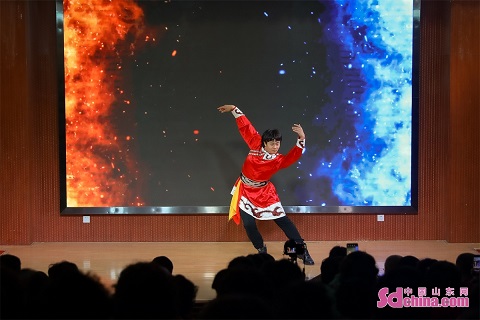 On March 8, the 113th International Women's Day, cultural volunteers from Qingdao Dancers Association went to Dongli Community of Licang District in Qingdao, China’s Shandong Province, to present cultural performances for residents, and benefit and serve the people with cultural activities. (Photo by Zhang Ying)
