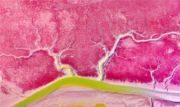 This brilliant crimson stretches as far as the eye can see, creating an amazing view, with waterbirds nestling amid winding rivers, old boats and bridges. All are set against the striking scarlet hues of the grass.