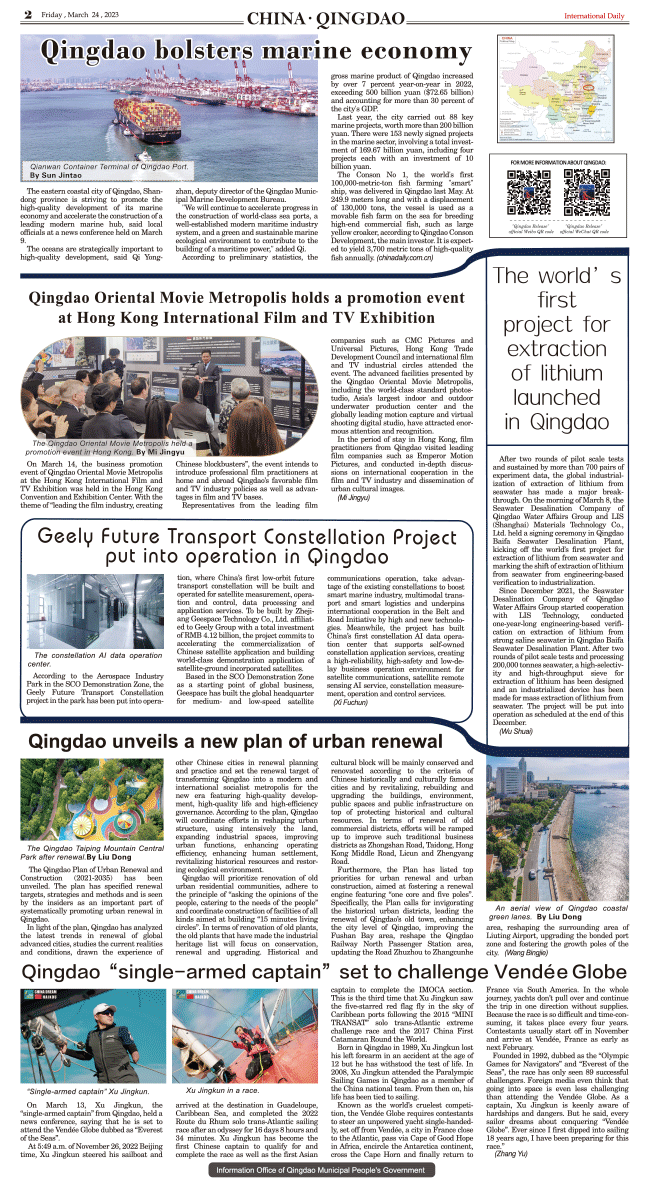 3/24-International Daily News CHINA.QINGDAO 2023/3/24 source: International daily Print