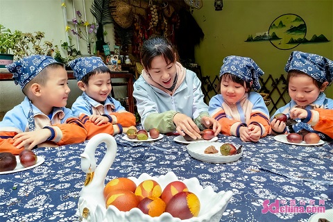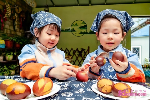Photo taken on April 3 shows that children and teachers at Qingfeng Road Kindergarten of Licang District of Qingdao, China’s Shandong Province, took part in folk activities to mark the Tomb-sweeping Day. (Photo by Zhang Ying)