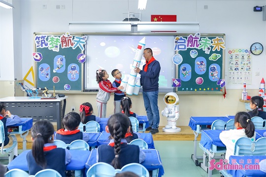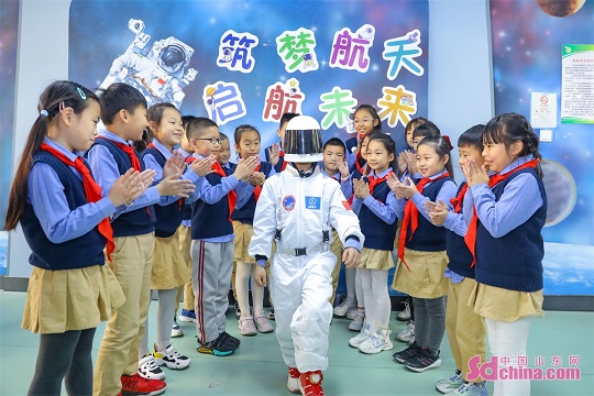 On April 11th, students in a primary in Qingdao, East China’s Shandong Province, participated in a science popularization activity to welcome the International Day of Human Space Flight, which falls on April 12. (Photo by Zhang Ying)