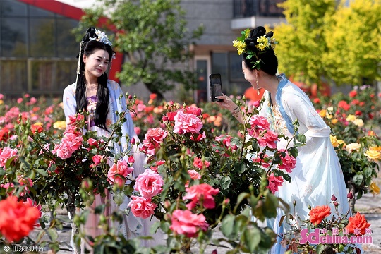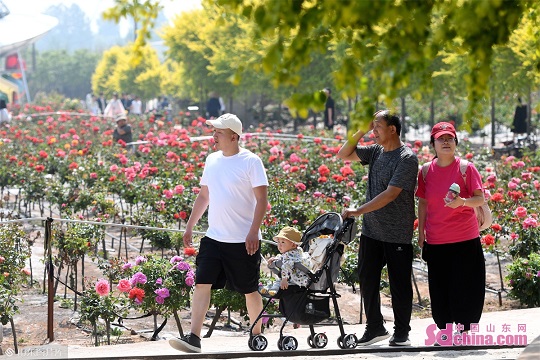 The 3000-mu roses are in full bloom in Jimo Rose Town, Qingdao, E China’s Shandong province, attracting people for appreciation. The town has introduced more than 1,200 varieties of roses and developed as a cultural industry park combining planting, cultivation, R&D of rose products, and entertainment. Seeing over 300 thousand tourists per year, the rose town has contributed to building a better-living countryside and rural revitalization. (Photo by Yu Fangping)