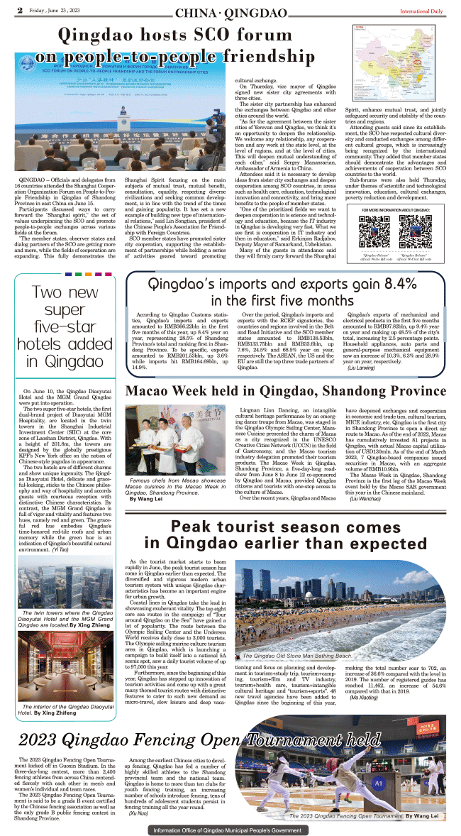 6/22-International Daily News CHINA.QINGDAO 2023/6/26 source: International daily Print