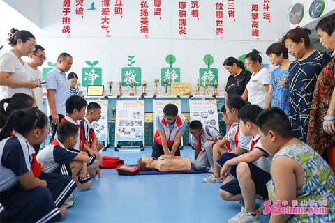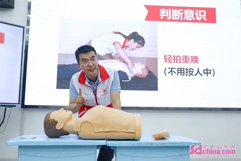 An emergency rescue training was held in Qingdao West Coast New Area to help citizens improve their first-aid ability. (Photo by Zhang Ying)