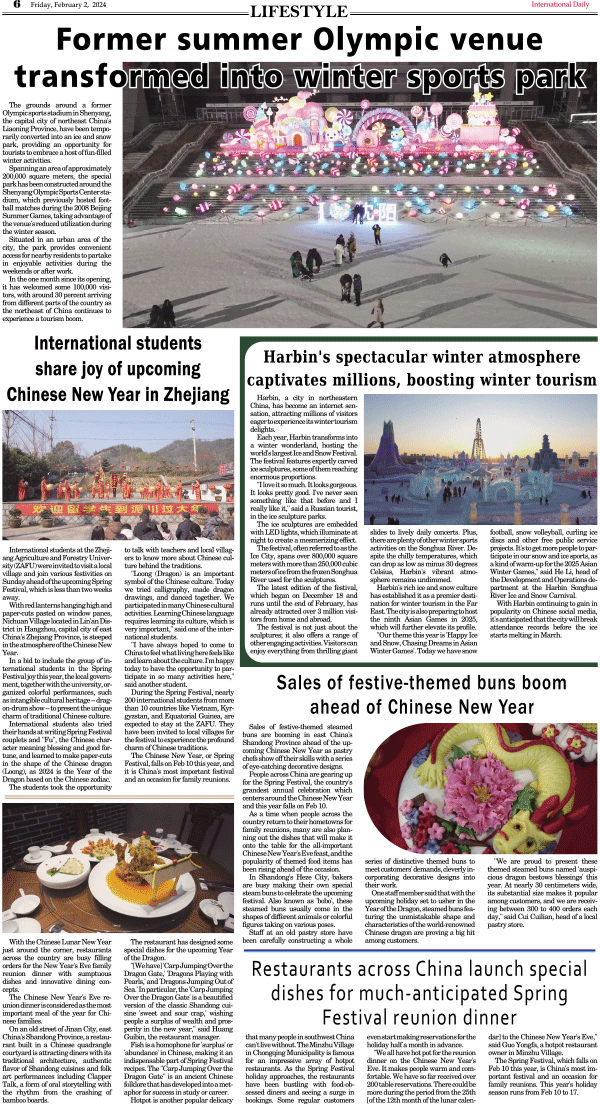2/2-International Daily News-LIFESTYLE 发布日期:2024/2/2 来源:International Daily 打印