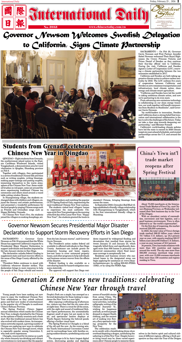 2/23-International Daily News-International Daily 发布日期:2024/2/23 来源:International Daily 打印