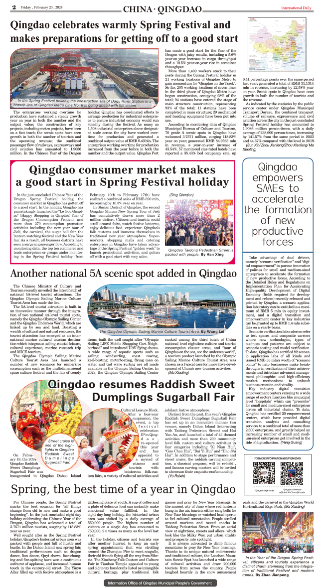 2/23-International Daily News CHINA.QINGDAO 发布日期:2024/2/26 来源:International daily 打印