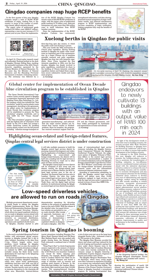 4/19-International Daily News CHINA.QINGDAO 发布日期:2024/4/20 来源:International daily 打印