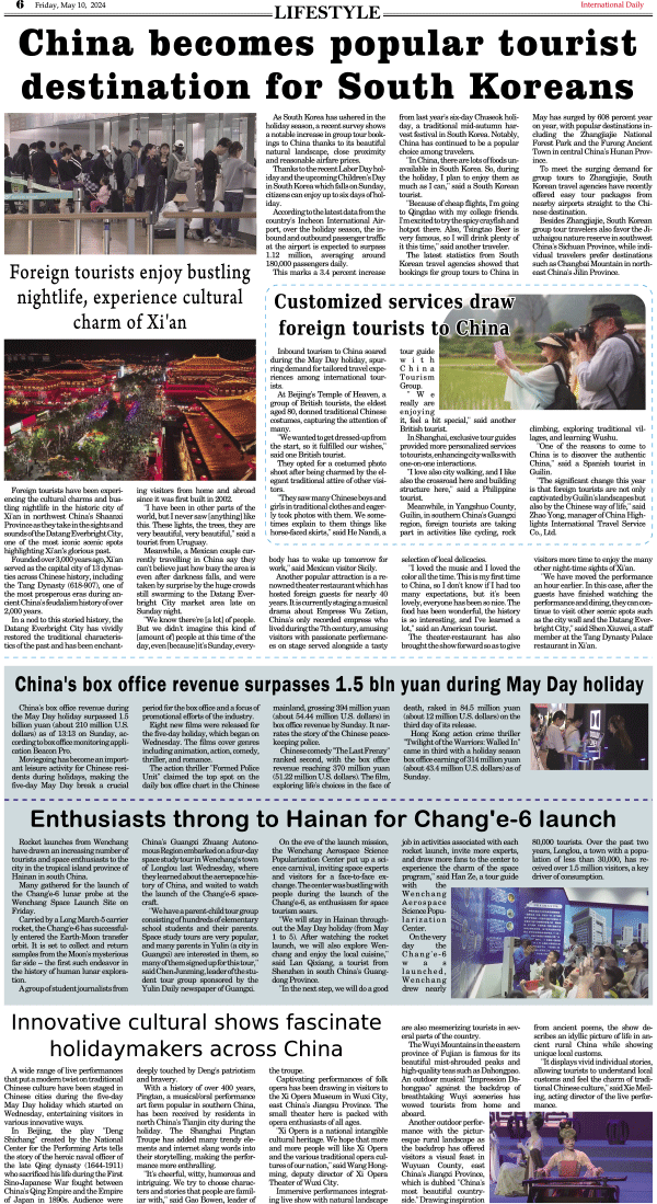 5/10-International Daily News-LIFESTYLE 发布日期:2024/5/10 来源:International Daily 打印