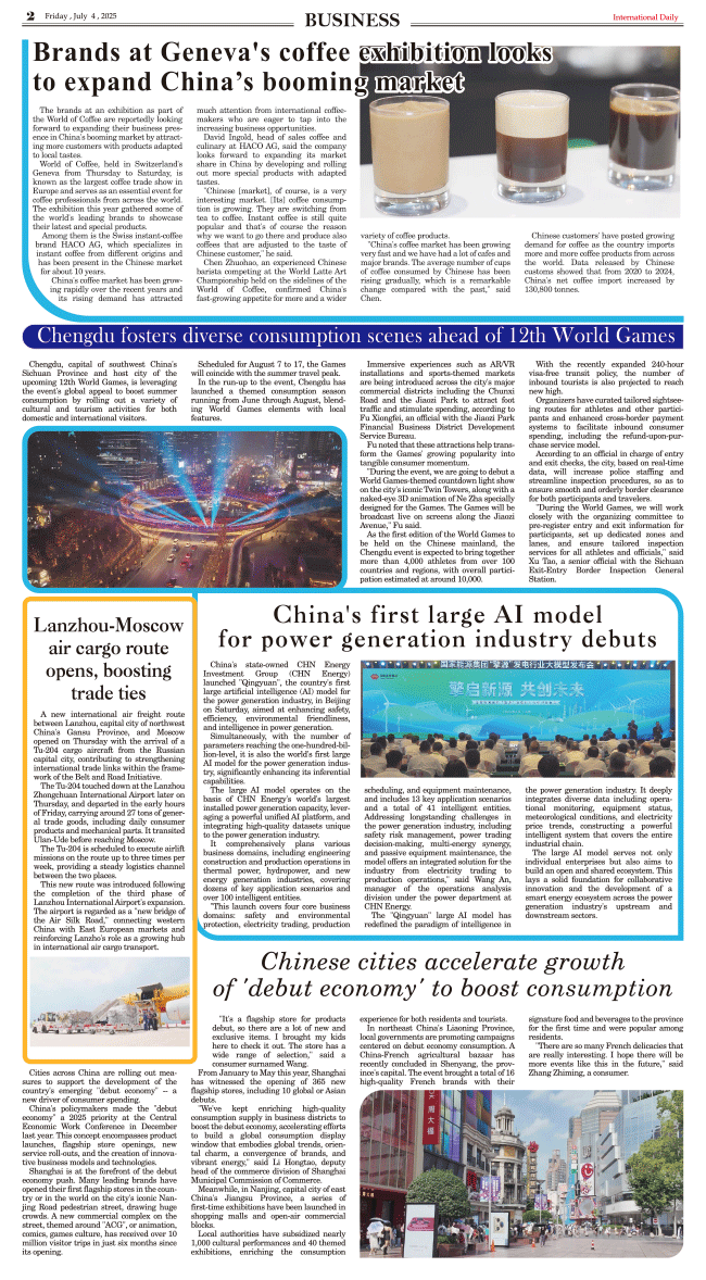 7/4-International Daily News-BUSINESS 发布日期:2025/7/4 来源:International daily 打印