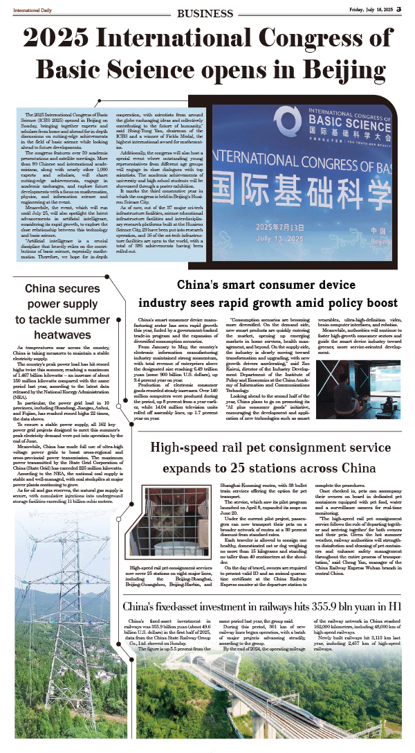 7/18-International Daily News-BUSINESS 发布日期:2025/7/19 来源: 打印