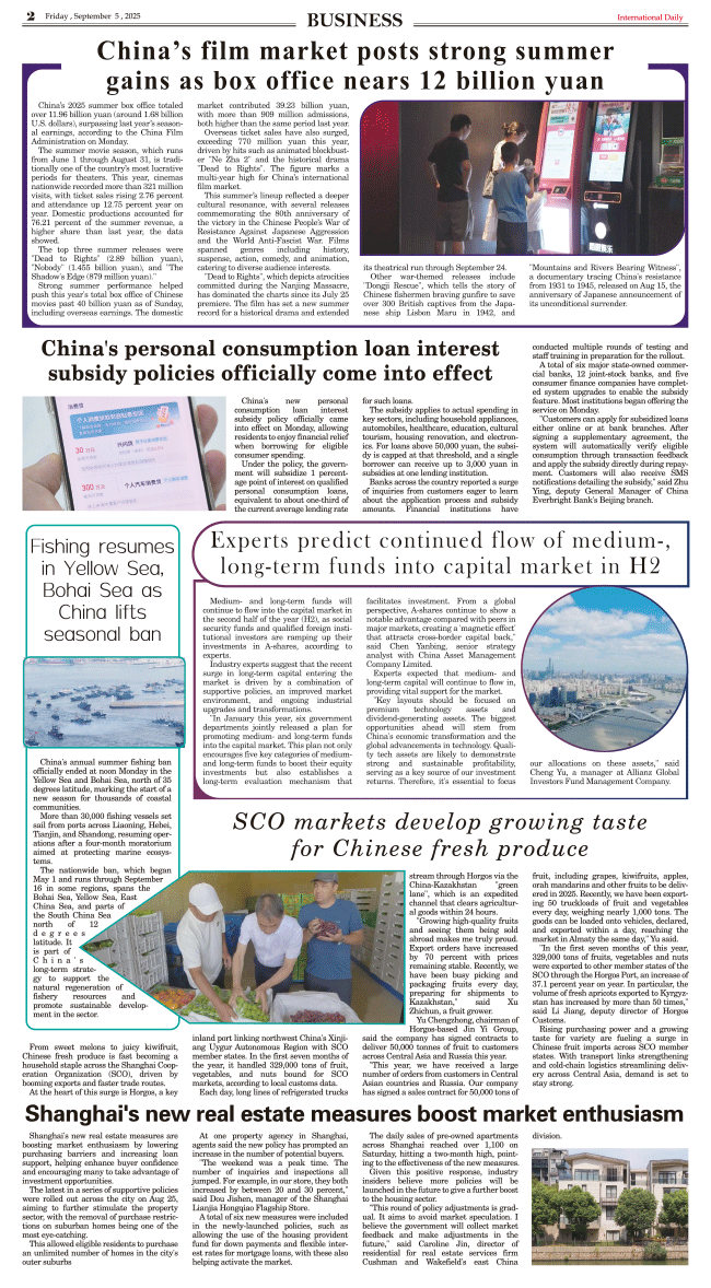 9/5-International Daily News-BUSINESS 发布日期:2025/9/5 来源:International daily 打印