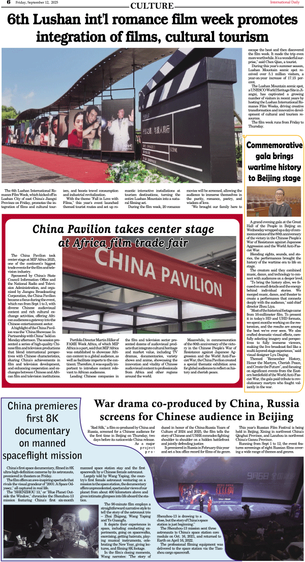 9/12-International Daily News-CULTURE 发布日期:2025/9/12 来源:International Daily 打印