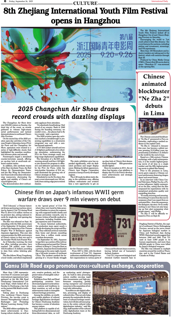 9/26-International Daily News-CULTURE 发布日期:2025/9/26 来源:International Daily 打印