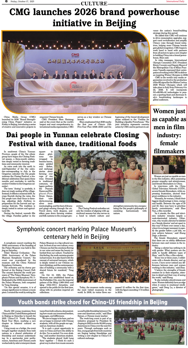 10/17-International Daily News-CULTURE 发布日期:2025/10/17 来源:International Daily 打印