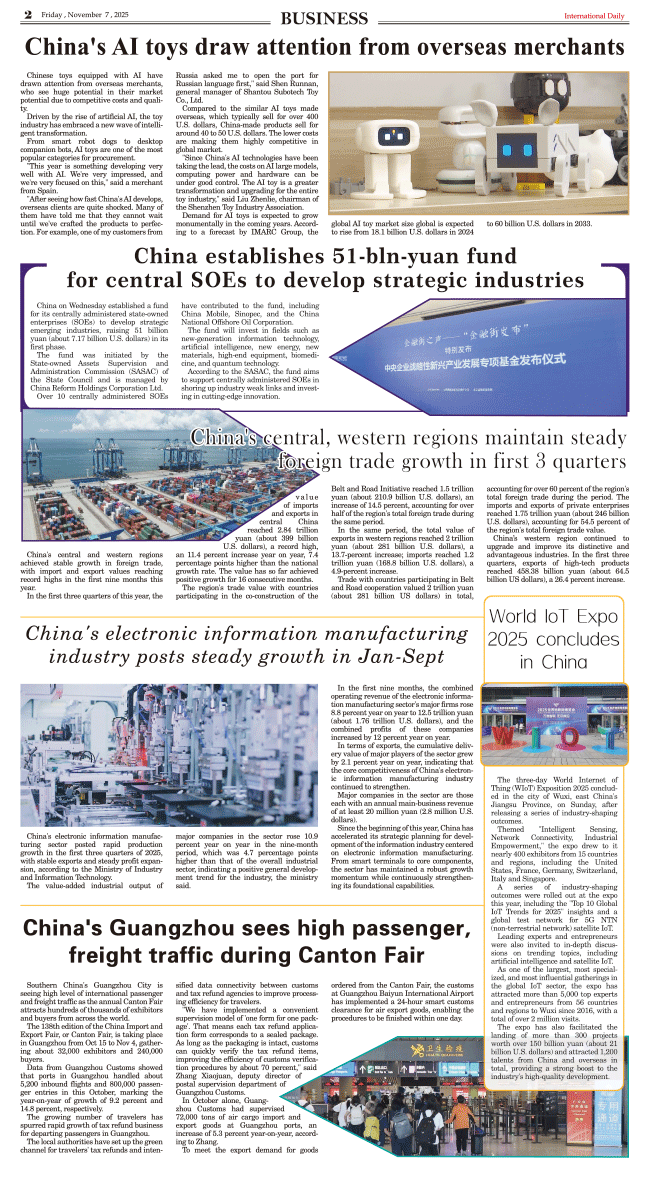 11/7-International Daily News-BUSINESS 发布日期:2025/11/7 来源:International daily 打印