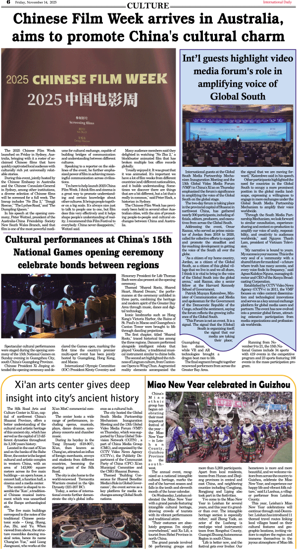 11/14-International Daily News-CULTURE 发布日期:2025/11/14 来源:International Daily 打印
