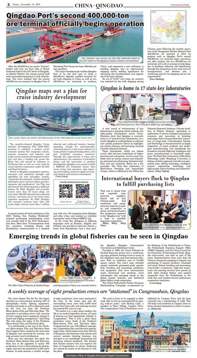 11/14-International Daily News-China Qingdao 发布日期:2025/11/14 来源:International daily 打印