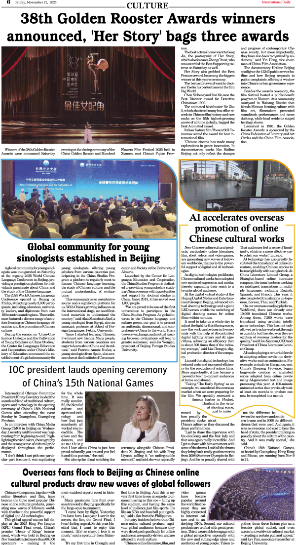 11/21-International Daily News-CULTURE 发布日期:2025/11/24 来源:International Daily 打印