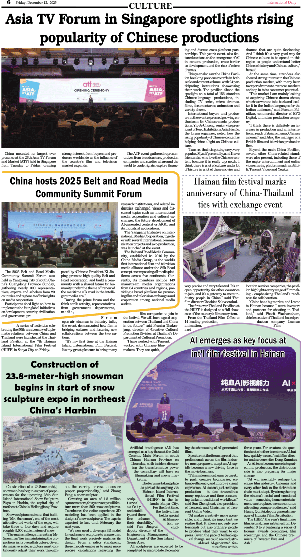 12/12-International Daily News-CULTURE 发布日期:2025/12/12 来源:International Daily 打印