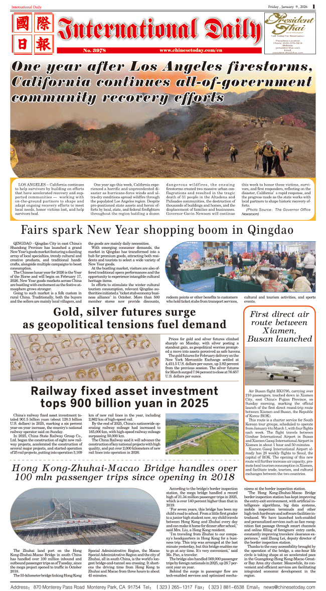 1/9-International Daily News-International Daily 发布日期:2026/1/9 来源:International daily 打印