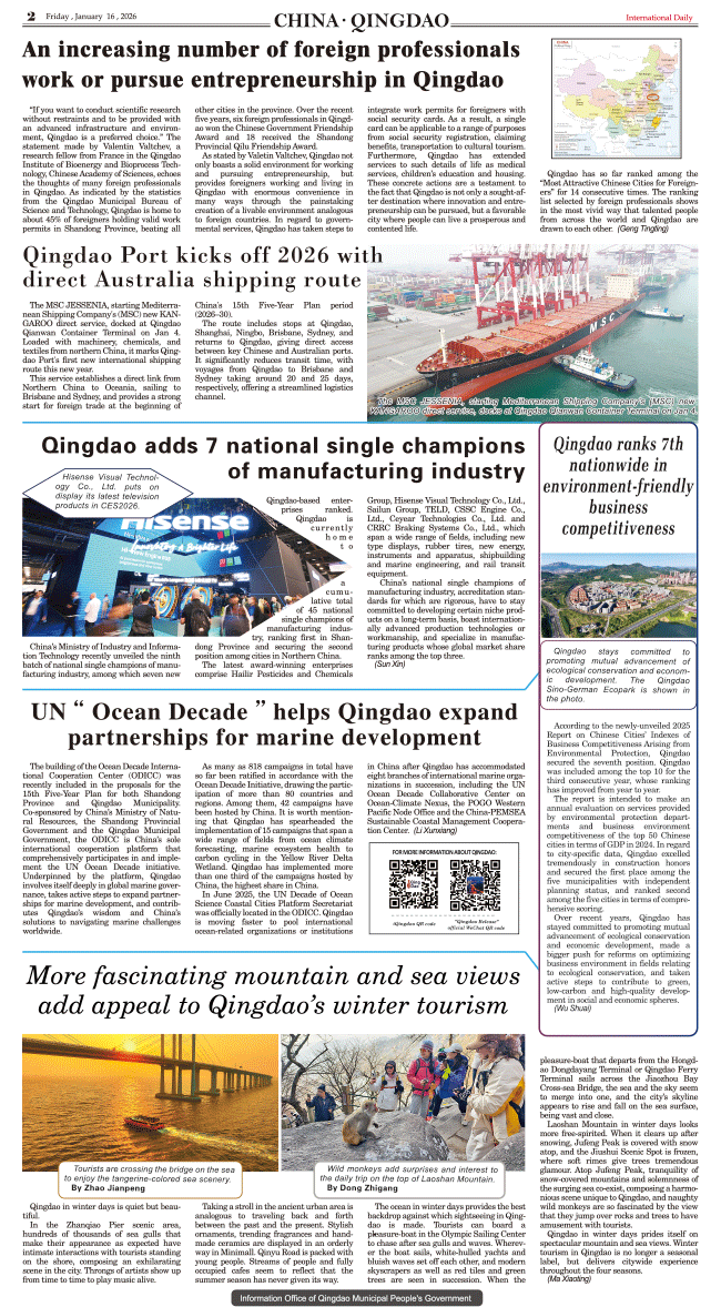 1/2-International Daily News-China Qingdao 发布日期:2026/1/16 来源:International daily 打印