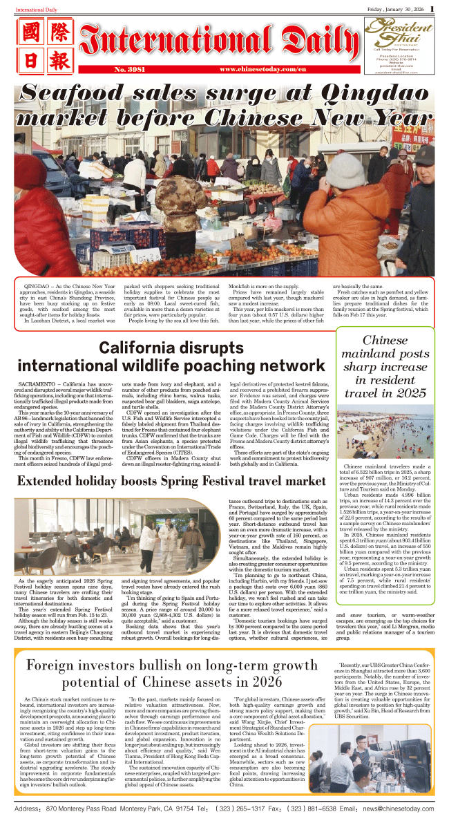 1/30-International Daily News-International Daily 发布日期:2026/1/30 来源:International daily 打印
