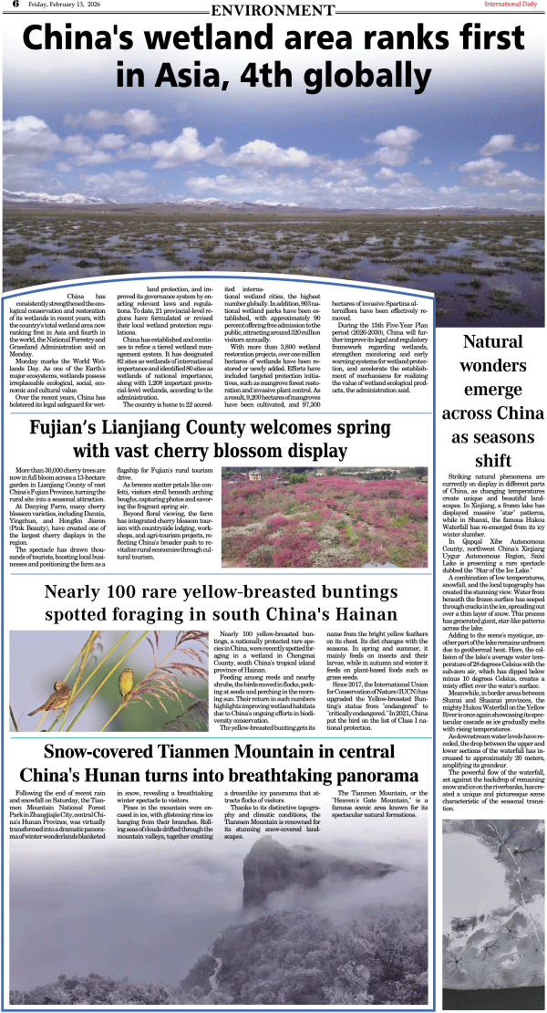 2/13-International Daily News-ENVIRONMENT 发布日期:2026/2/24 来源:International Daily 打印