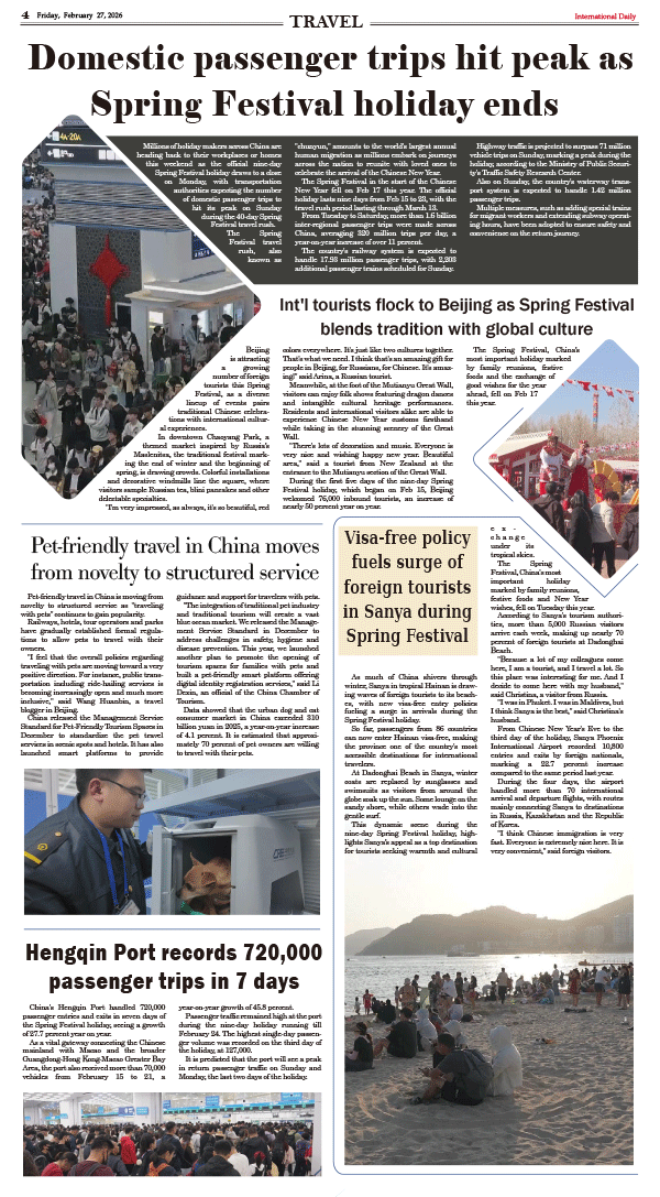2/27-International Daily News-TRAVEL 发布日期:2026/2/28 来源: 打印