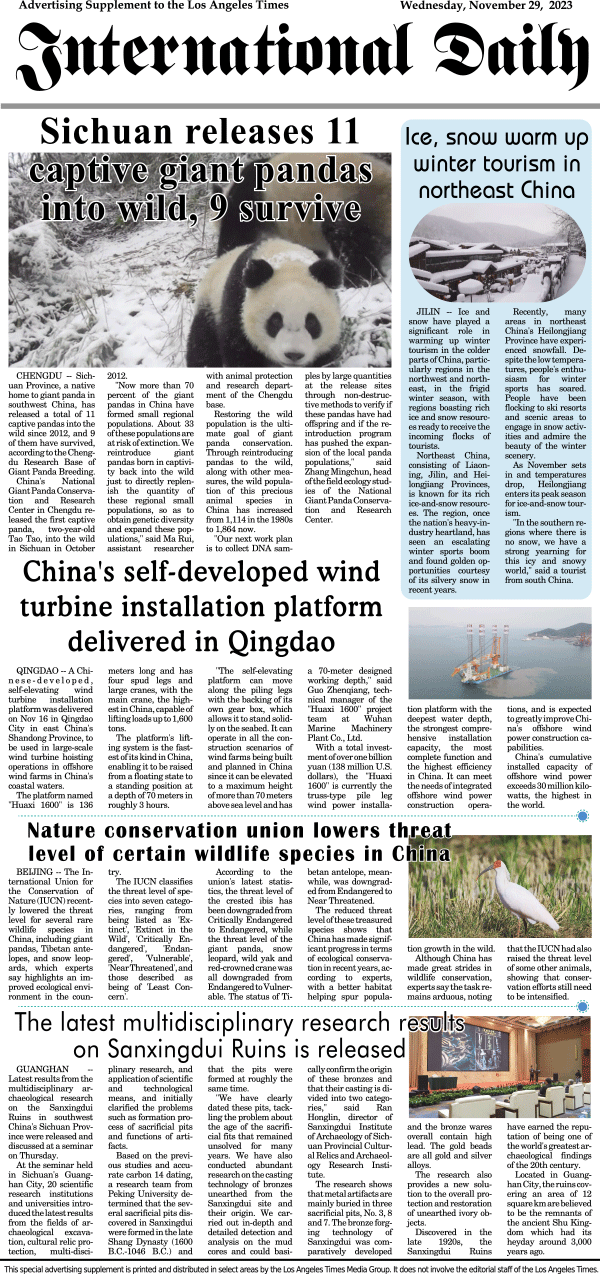 International Daily News supplement to The Los Angeles Times-International Daily 1 发布日期:2023/11/29 来源:International Daily 打印