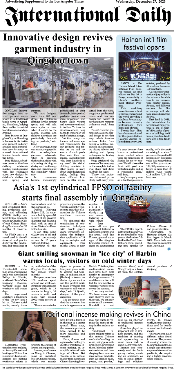 International Daily News supplement to The Los Angeles Times-International Daily 1 发布日期:2024/1/2 来源:International Daily 打印
