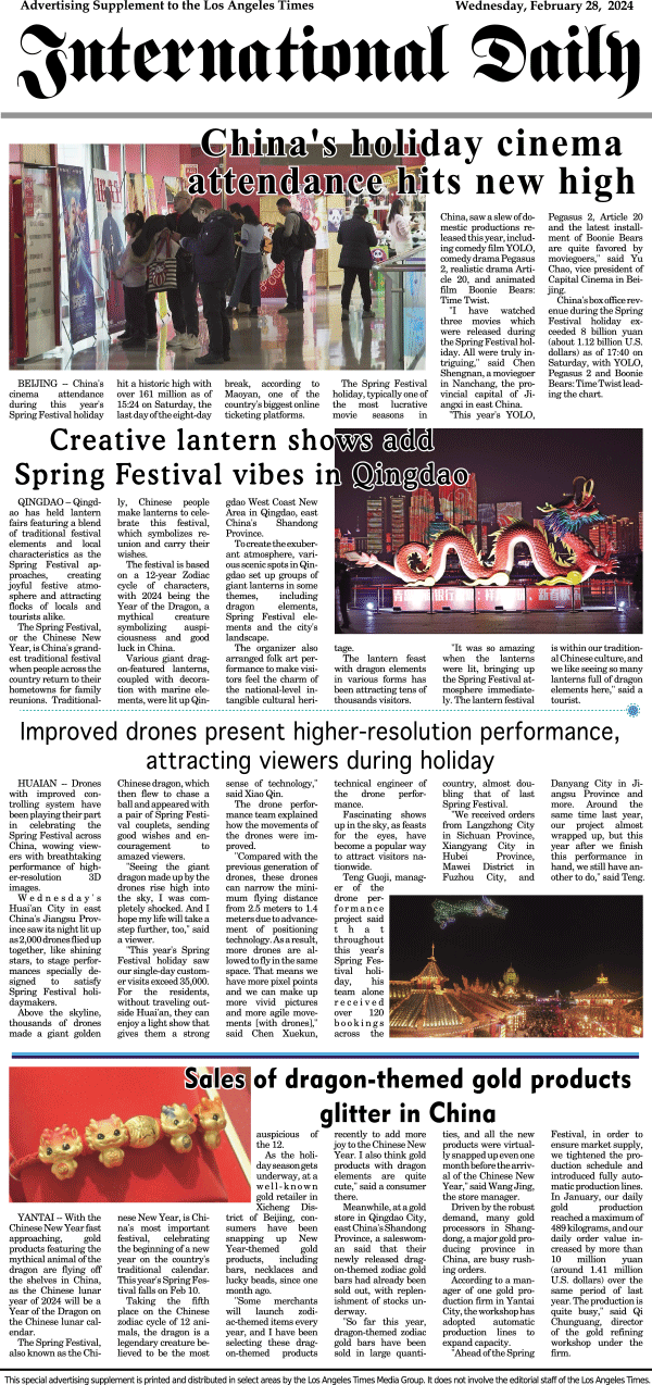 International Daily News supplement to The Los Angeles Times-International Daily 1 发布日期:2024/2/28 来源:International Daily 打印