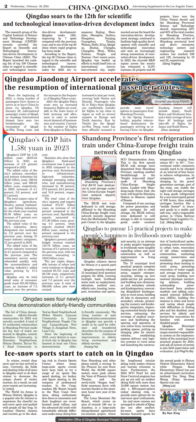 International Daily News supplement to The Los Angeles Times-CHINA .QINGDAO 2 发布日期:2024/2/29 来源:International daily 打印