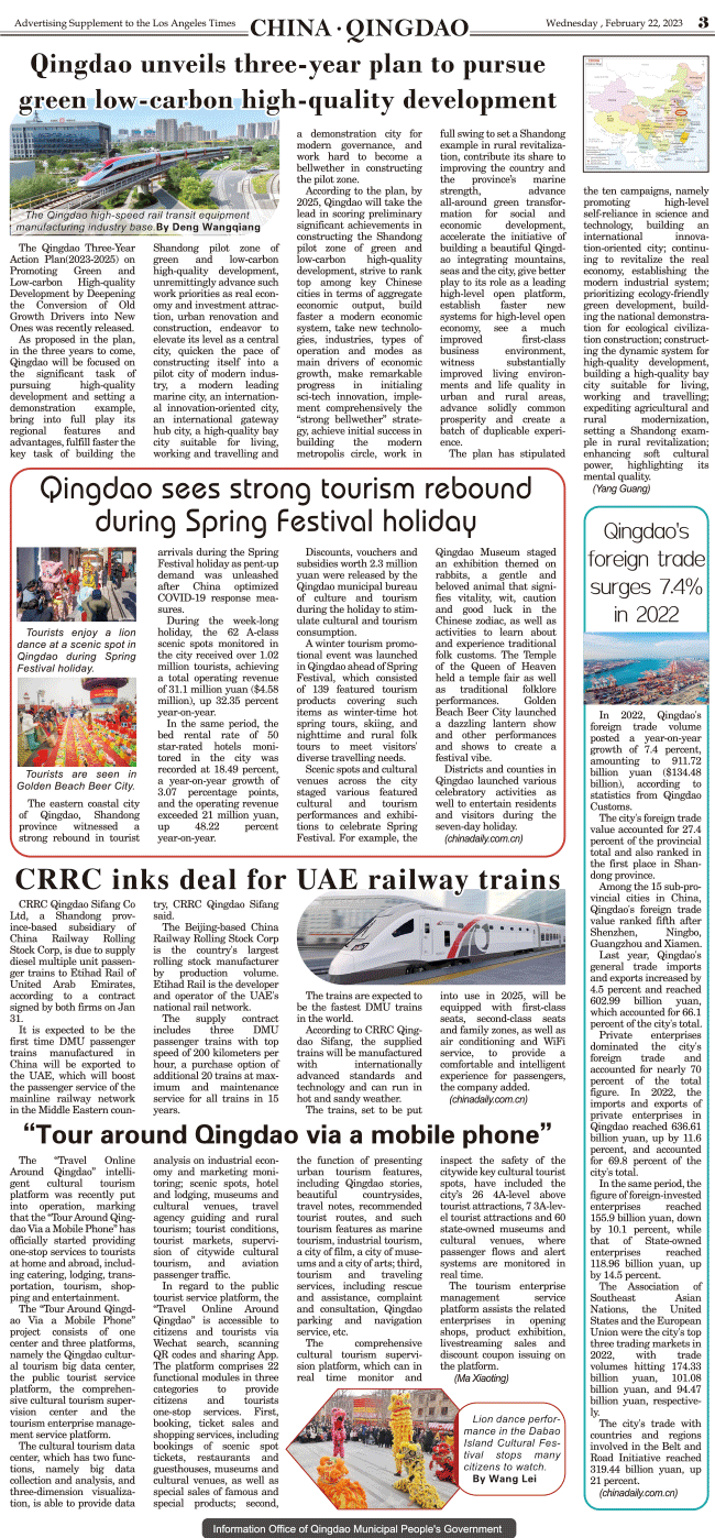 International Daily News supplement to The Los Angeles Times-CHINA.QINGDAO 3 发布日期:2023/2/23 来源:International daily 打印