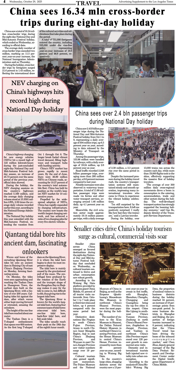 International Daily News supplement to The Los Angeles Times-TRAVEL 4 发布日期:2025/11/4 来源:International Daily 打印