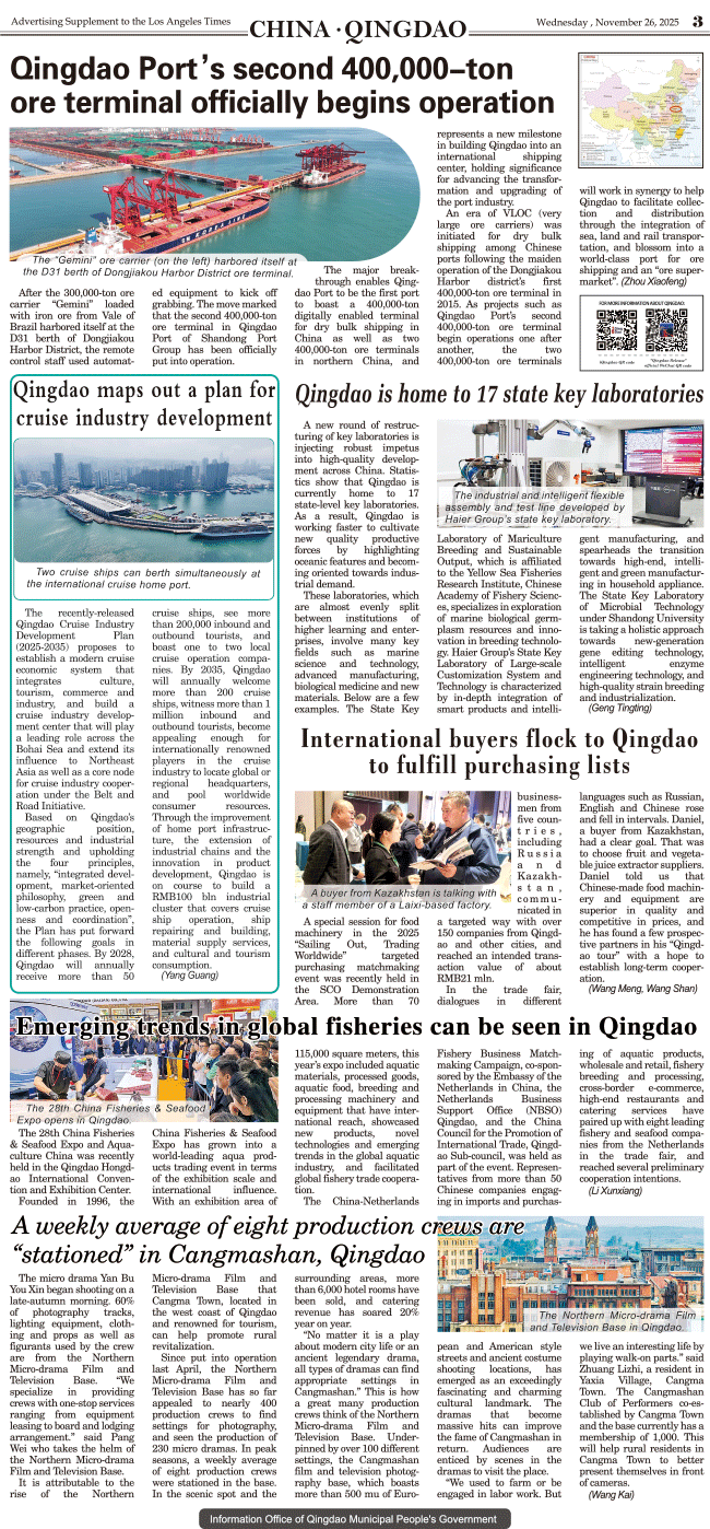 International Daily News supplement to The Los Angeles Times-CHINA.QINGDAO 3 发布日期:2025/11/27 来源:International daily 打印