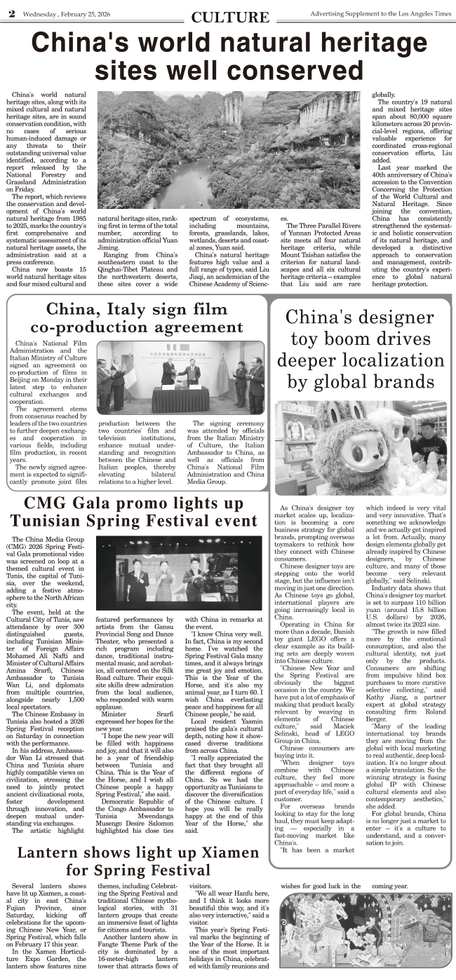 International Daily News supplement to The Los Angeles Times-CULTURE 发布日期:2026/2/25 来源:International daily 打印