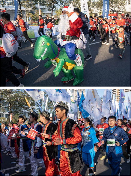 Lingnan: Beauty Beyond Borders | On the morning of 24 December, 2023, #Guangzhou Huangpu #Marathon officially started. This marathon opened the new track. The starting point of the course is at Phoenix Lake of China-Singapore Guangzhou Knowledge City(CSGKC), and both the full marathon and half marathon finish at Jiulong Lake, while the fun run finishes at Yulin No.1 Road. The course passes through four avenues, including Jiulong Avenue and Xinglong Avenue, which show the urban style of CSGKC, and the runners witnessed the livable, workable and sustainable urban environment of the China-Singapore Guangzhou Knowledge City during the running. On the track, all kinds of fancy costumes competed with each other, attracting everyone's attention and becoming a attraction on the track. #SplendidLingnan