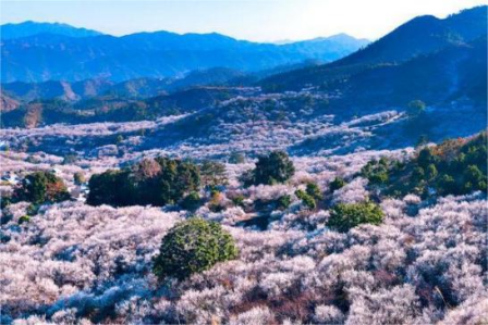 汕尾陆河县十多万亩梅花正在争妍斗艳。沿着蜿蜒的公路,在起伏的柏油路上穿行,沿途是连绵的青山和崭新美丽的村舍,层层叠叠的绿色与参差错落的亮色在眼前交错出现,被梅花包裹的村庄如梦似幻,上万亩梅花铺展成连绵的水墨画卷,清风吹过,暗香浮动。这里俨然是梅花的世界。