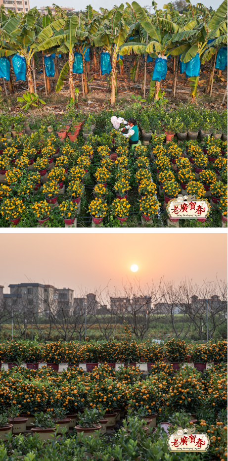 夕阳时分,广州市番禺区北斗大桥附近的都那村,一片片年桔树晒得金黄,随处可见农户们忙着将收获的年桔装车、发运。不久后,这些寓意吉庆祥和的年桔将走进城市千家万户,传递龙年祝福。
