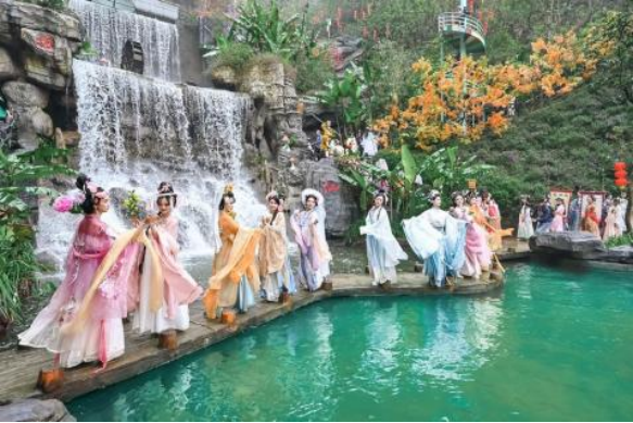 春风拂面,花香袭人,又是一年花朝时。3月23日,清远笔架山景区成功举办首届花朝节庆典。一众“花神”们身着精美汉服翩然而至,游园、踏青、共赏春色满园,为游客们呈现了一场精彩的视听盛宴。