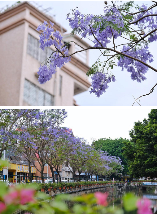 Lingnan: Beauty Beyond Borders | On the 17th of April, #Guangzhou is really mild. In Shixi, Haizhu District, the Jacaranda mimosifolia trees on the river bank are in full bloom, and the branches are transformed into a "blue ocean". The scene was very romantic as the breeze blew through the branches, creating blue waves. In Guangzhou, the best viewing period for Jacaranda mimosifolia is from late April to early May. You can see these lovely and romantic flowers in Shixi Fuquan Street, Haizhu, Guangzhou, Zhujiang New Town, South Gate of Jinan University, Ersha Island, Zuiguan Park, Tianhe Park, Zhujiang Park and other places. #SplendidLingnan
