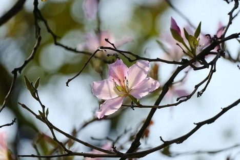 Spring in Guangzhou begins with the bloom of redbud flowers. Spring breeze blows in the face, and the redbud flowers blooming under the sun looks delicate and charming. They wear pink, white, and purple "dance clothes", quietly elegant and light, fluttering with the wind among the green leaves.