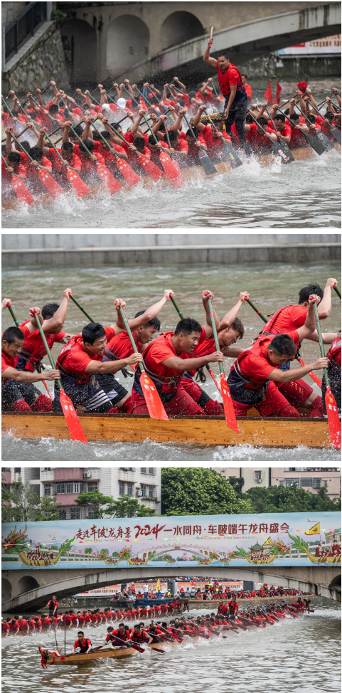 为庆祝端午佳节,迎接第十五届全国运动会的到来,“2024一水同舟?车陂端午龙舟盛会”于6月5日上午激情开赛,广州市天河区车陂村内12支龙舟队展开激烈角逐,上演一场赛龙夺锦的年度狂欢盛宴。