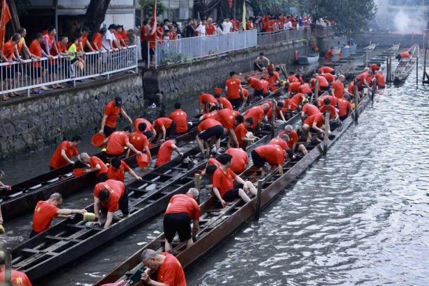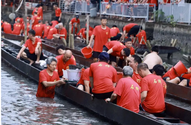 On May 5, over a hundred dragon boat rowers from Guangzhou's Shipai Village converged at Shuanggang Village in Huangpu District. Eight dragon boats that had slumbered for a year surged back to life through the synchronized efforts of oarsmen, with firecrackers crackling and ceremonial drums thundering across the waterways. After careful restoration, these dragon boats will soon return in full glory, ready to race and ride the waves during the Dragon Boat Festival.